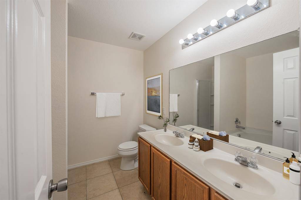 CRAVING SPACE, QUIET, AND CONVENIENCE? THIS MOVE-IN-READY HOME DELIVERS PEACEFUL LIVING OUTSIDE THE CITY WHILE KEEPING YOU EASILY CONNECTED TO THE METROPLEX! Step inside and you'll immediately feel the warmth of this beautifully maintained home, featuring rich bamboo wood flooring throughout. A versatile formal dining or living room greets you near the entry — perfect for hosting guests or creating an elegant sitting space. The private primary suite is tucked away on the first floor, offering a quiet retreat after a long day. Continue toward the heart of the home, where a cozy den with a charming fireplace opens to the adjoining kitchen. The kitchen boasts newer, attractive cabinetry with ample storage, a breakfast bar for casual dining, and inviting ceramic tile flooring. A generously sized utility room adds even more convenience with plenty of space for washer, dryer, and extra storage. Upstairs is where the possibilities truly expand — 3 spacious bedrooms plus a large bonus room that can easily serve as a media room, playroom, or even a 5th bedroom. Each bedroom features its own walk-in closet — a rare and wonderful find! Outside, the manageable backyard includes two fruit trees, adding a touch of nature and charm. The community itself offers fantastic amenities including a pool, fitness center, and playground — something for everyone to enjoy. 3D VIRTUAL WALKTHROUGH TOUR ONLINE. ***Come experience this welcoming and well-appointed home for yourself — it may just be the perfect fit!***