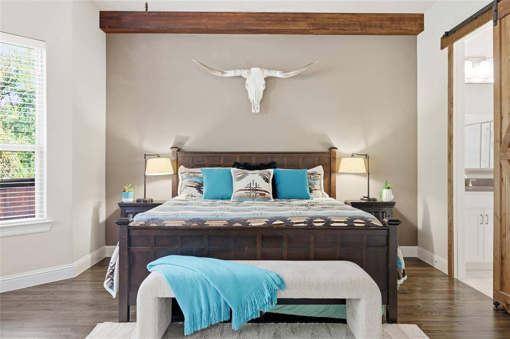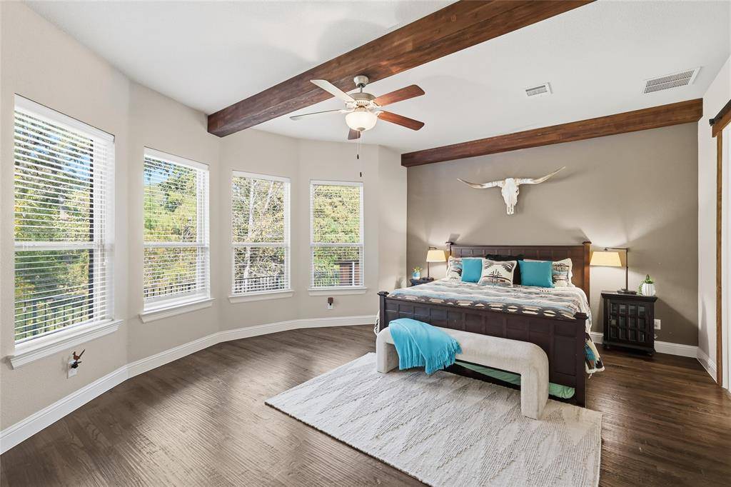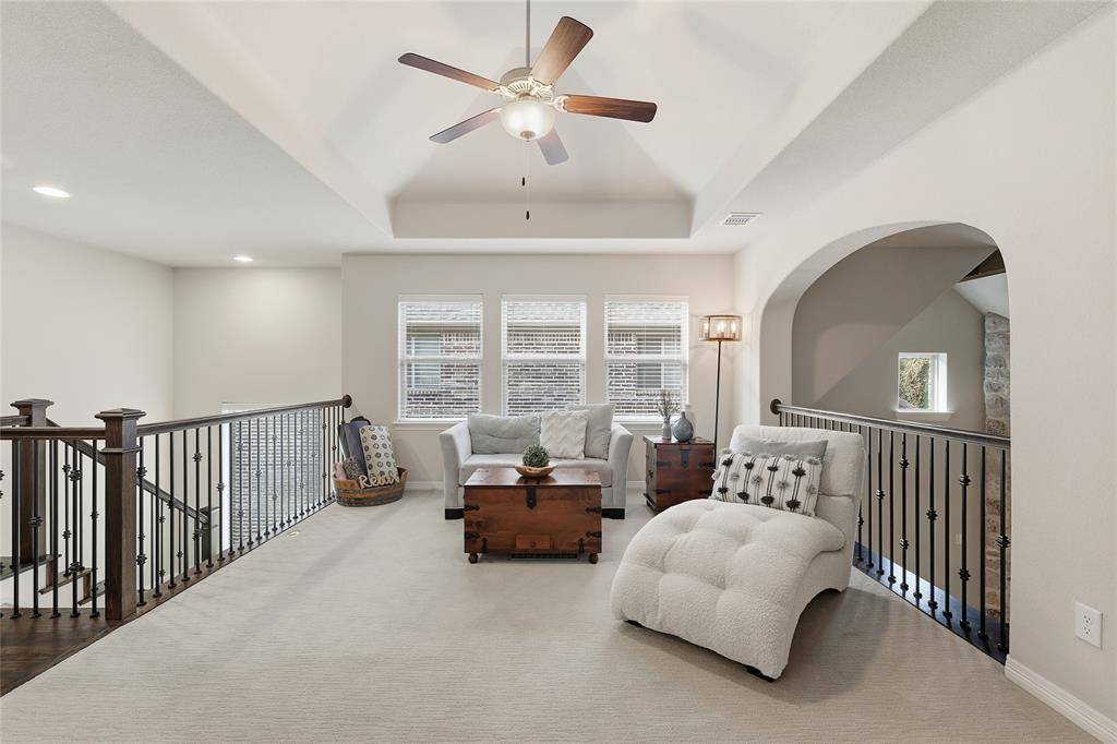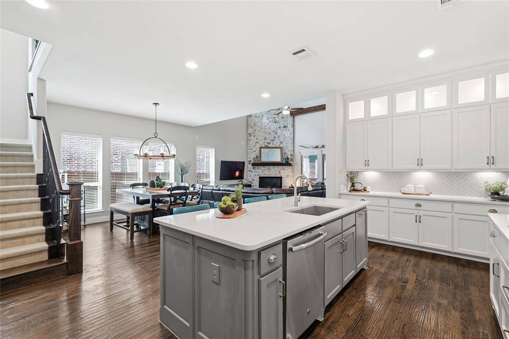 Stunning Darling Homes build offering luxury, privacy, and thoughtful design throughout. This immaculate two-story home features 4 bedrooms, 3.2 baths, and a 3-car tandem garage—crafted with meticulous attention to detail and curated designer touches throughout. Step inside to an open-concept living experience centered around the gourmet kitchen, complete with a large island, walk-in pantry, and seamless flow into the spacious dining area framed by a wall of windows. The living room is warm and inviting, with its stone fireplace, oversized wood mantel, and beautiful custom-beam ceiling. The first floor includes a dedicated study and a serene primary suite featuring a bay window with a seating area, beam ceiling, and a spa-inspired ensuite with a custom barn door, dual vanities, a garden tub, and a separate walk-in shower. Upstairs, you'll find a generous game room with a Juliet balcony overlooking both the front entrance and the living room below, along with three additional bedrooms and two full baths. Out back, relax or entertain on the private patio with a wood-burning fireplace and enjoy the peaceful greenbelt views—no neighbors behind you. All of this is situated in a prime location with quick access to DFW Airport, Glade Parks shopping, dining, entertainment, and highly sought-after GCISD schools. This one checks every box—A MUST SEE!