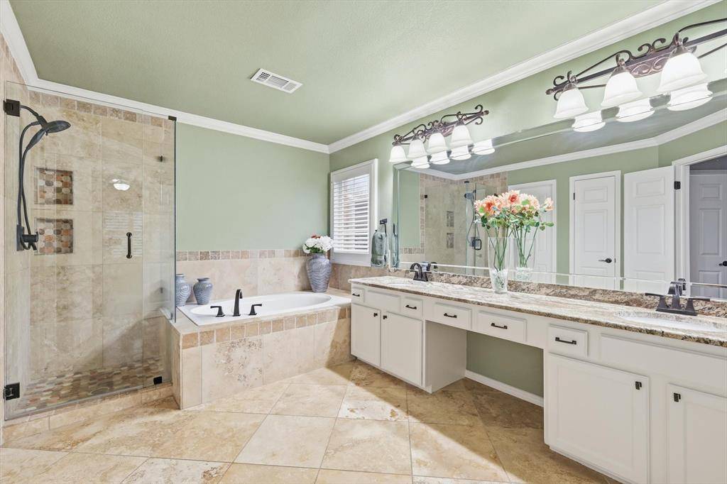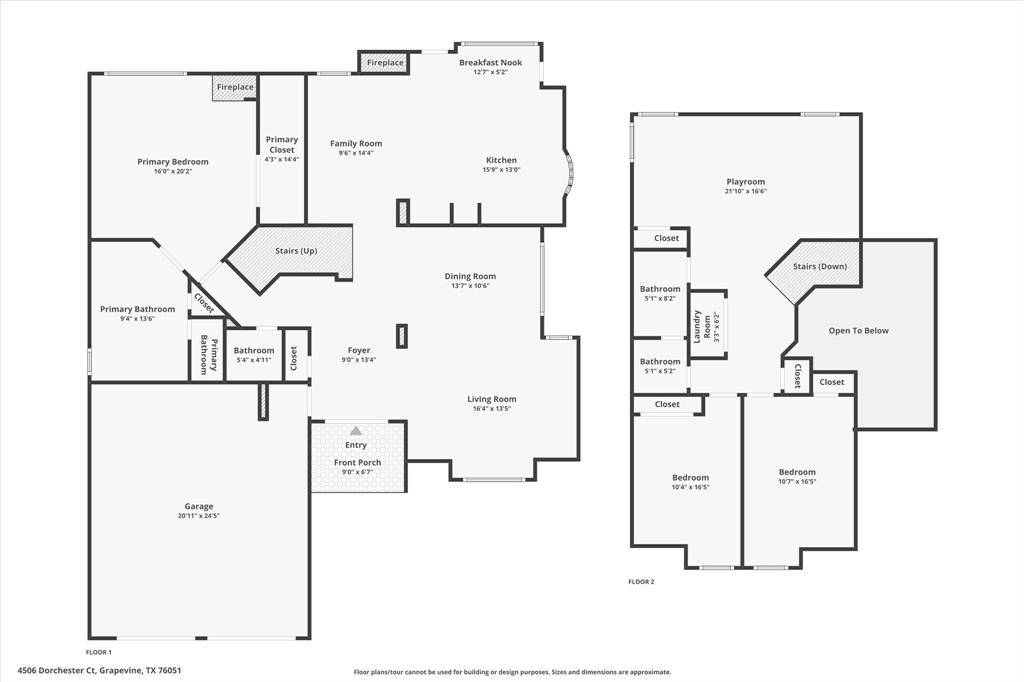 Prepare to be impressed… Nestled on a quiet cul-de-sac in the sought-after Glade Crossing subdivision, this home offers incredible drive-up appeal with a front yard statement tree and terraced flagstone retaining wall flowerbeds. This home has been thoughtfully enhanced for modern living, boasting refreshed paint throughout, updated carpet and LVP flooring. The property provides a spacious layout including a luxurious, private main-level primary suite with dual sinks, a jetted tub, and separate shower. Entertain easily in the dual living areas and enjoy the ambiance of two wood-burning fireplaces, while the gourmet kitchen features an island, stainless steel appliances, double oven and granite countertops. The second floor includes two bedrooms and a large loft for maximum flexibility. The backyard is a true retreat, featuring a magnificent 3-year-old PebbleTec pool, a separate hot tub, an extended outdoor living space with automated shades, low-maintenance artificial turf and a separate storage shed. The 2-car garage is oversized with a storage closet and workshop area. The front exterior is beautifully illuminated by Gemstone Lighting. Located on a corner lot, this Grapevine gem is highly desirable, with an exceptional location that is close to parks, highways, entertainment, DFW Airport, Baylor Scott and White Hospital and is walking distance to Grapevine Elementary School. Don't let this one pass you by!