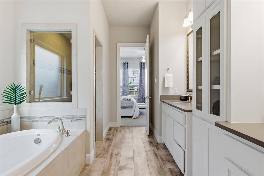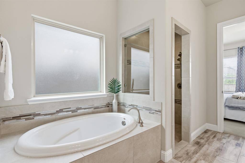 Welcome home, where sophistication meets spectacular living combined with unbeatable convenience. This stunning one owner 5-bedroom, 4-bathroom residence with pool and spa is perfectly situated on an interior lot located in GCISD! The heart of the home is the chef-inspired kitchen, which opens seamlessly to the main living area - all overlooking the backyard. This gourmet space boasts a huge island with bar seating, granite countertops, gas cooktop and stainless steel appliances. The adjacent main living area is defined by lovely hardwood floors, abundant natural light, and a striking floor-to-ceiling stone fireplace creating a cozy, luxurious focal point. The main level boasts a prestigious layout that includes the spacious primary suite with luxurious ensuite bath and huge walk-in closet with built-ins, a guest bedroom with an adjacent full bath, and a dedicated office or flex room. Entertainment possibilities abound upstairs with a flexible and fun game room ready for movie nights, relaxing or entertaining. The second level is completed by three generous bedrooms and two full bathrooms. Step outside to your ultimate retreat. The sparkling pool and soothing spa, is perfectly complemented by the covered patio to ensure year-round enjoyment, transforming your backyard into a personal resort. This is a rare opportunity to own a home that truly has it all, luxury finishes, a prime location, and wonderful amenities. Close to DFW International Airport, tons of shopping and restaurants - including Glade Parks, Downtown Grapevine, and Southlake Town Square...and centrally located between Dallas and Fort Worth! This home has everything you have been looking for and more!!