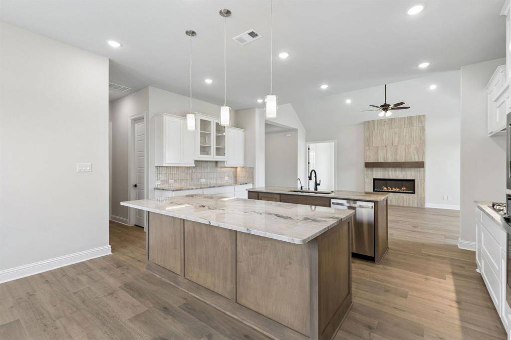 MLS# 21140938 - Built by Chesmar Homes - Ready Now! ~ This stunning single-family residence in Lakeview Heights offers 4 spacious primary bedrooms and 3 full and 1 half bath, across 2,648 square feet of modern living space. Built in 2025, this home features an open floorplan with vaulted ceilings, decorative lighting, and an eat-in kitchen equipped with a gorgeous central location with double islands and pantry. The family room boasts a gas fireplace, enhancing the inviting atmosphere. Enjoy outdoor living on the covered patio in a large private yard with a sprinkler system and beautiful landscaping. Additional highlights include a three-car garage, smart home features, and high-speed internet availability. Located within the highly regarded Azle ISD, with Hilltop Elementary and Azle High School nearby. Completion is estimated for March 27, 2026. Experience comfortable and stylish living in this exceptional property.