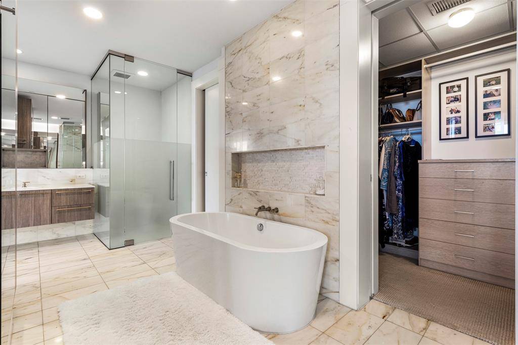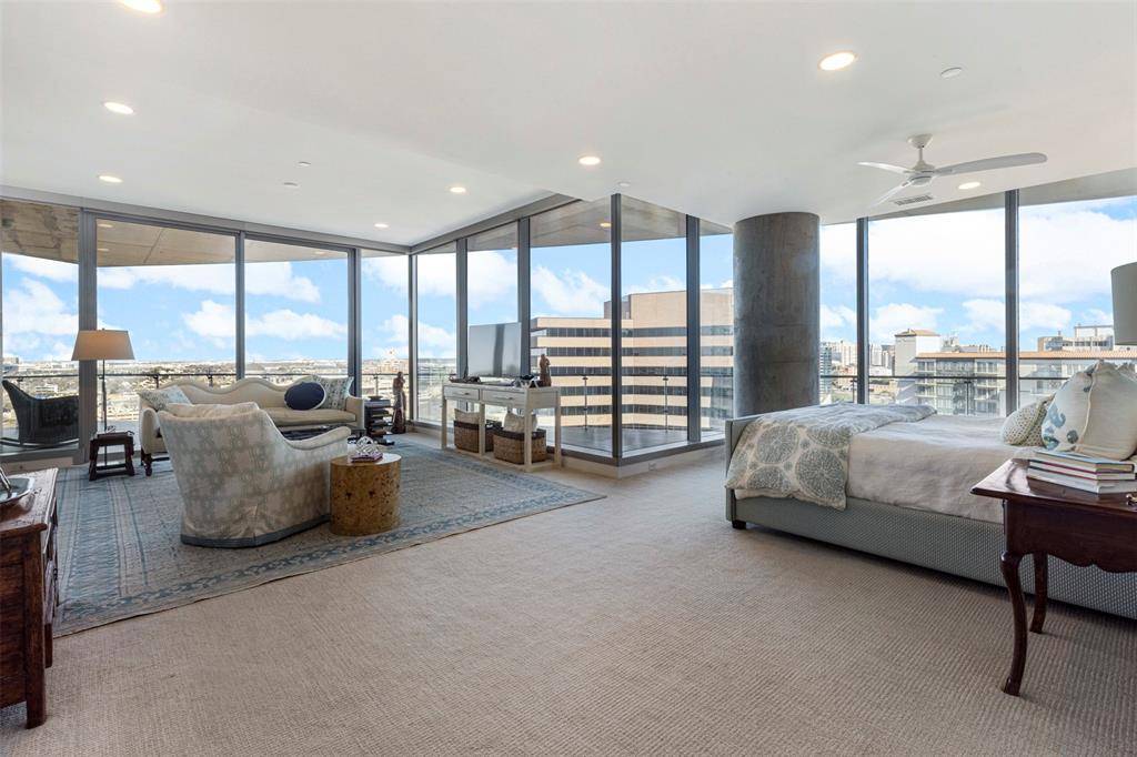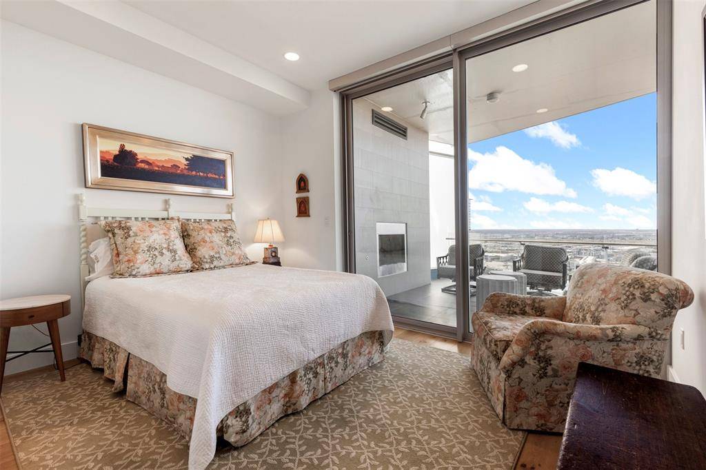 This elegant three-bedroom, three-and-a-half-bath residence offers sweeping panoramic views of Dallas, showcased from two expansive private terraces—each appointed with a fireplace for year-round enjoyment.