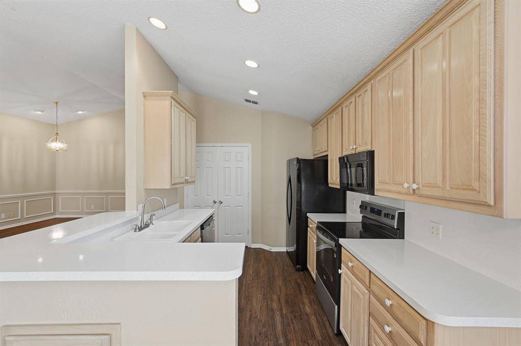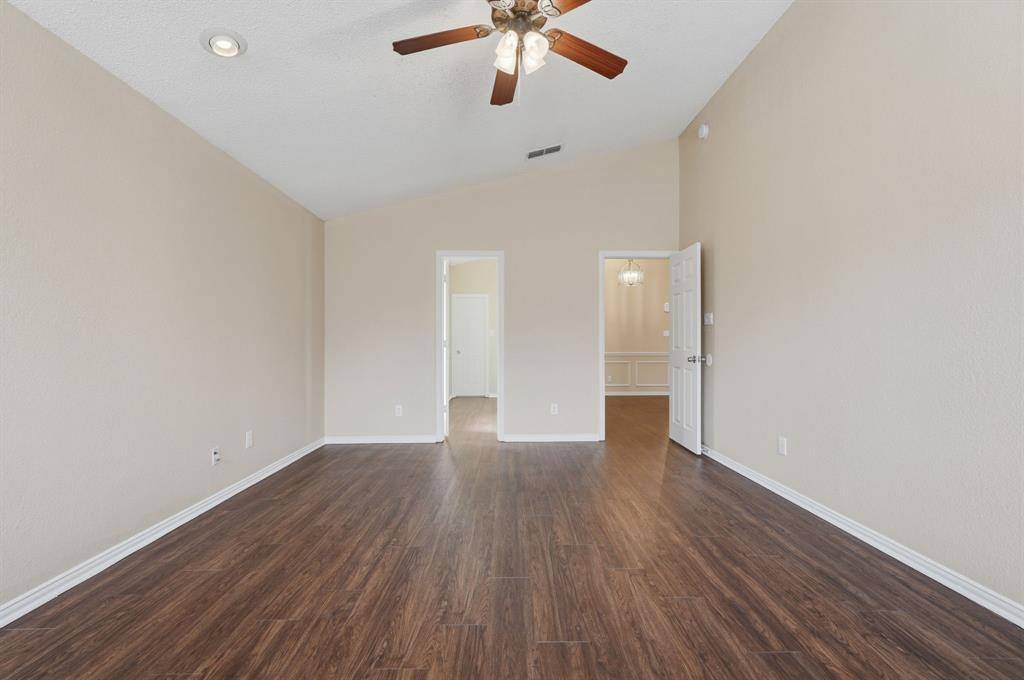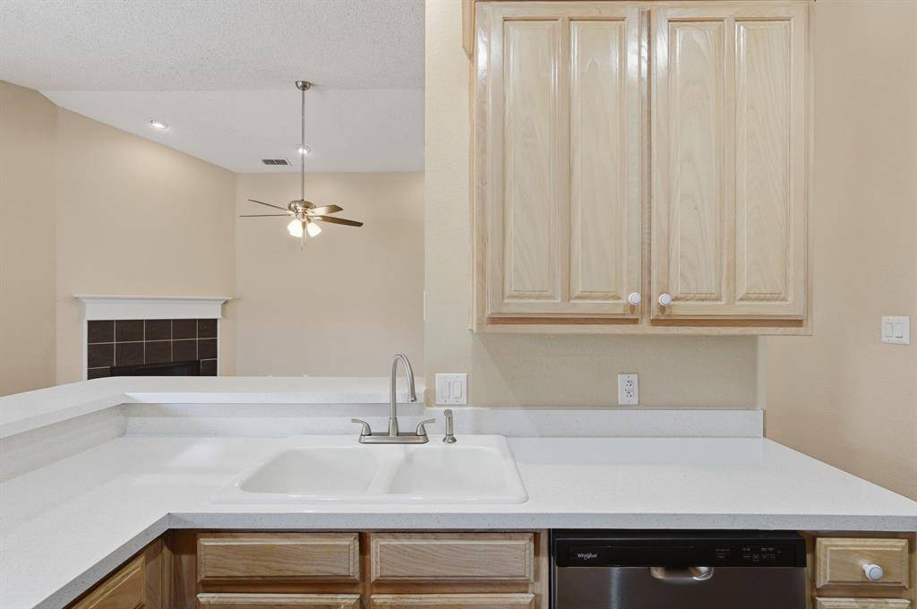 MOVE-IN READY one-story home featuring 3 bedrooms and 2 bathrooms with a 2-car garage! This inviting open floor plan offers a spacious living room with a cozy fireplace, accent lighting, and great natural flow into the kitchen with a breakfast bar and breakfast area. Enjoy elegant crown molding in the formal dining area, perfect for gatherings. The primary suite includes a double vanity and a separate tub and shower. Step outside to a covered back porch and fenced backyard—ideal for relaxing or entertaining!