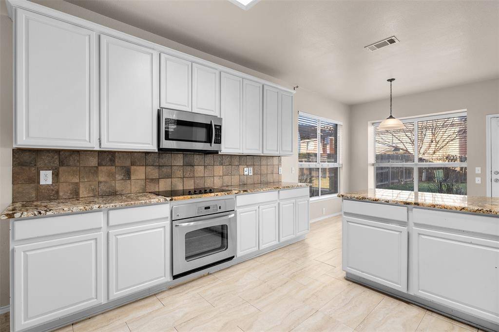 Discover the space, comfort, and versatility you've been searching for in this beautifully maintained 5-bedroom, 3-bath home in highly sought-after Glade Manor in Euless. Perfectly positioned near schools, shopping, and everyday conveniences, this all-brick residence is designed to fit the way you live. Step through the foyer to find a flexible formal dining room or private study, ideal for working from home or hosting special occasions. The inviting main living area showcases a striking granite-surround fireplace and elegant waterfall chandelier, creating a warm yet sophisticated focal point. Large windows fill the space with natural light and flow seamlessly into the breakfast area and kitchen. The chef's kitchen is ready for gatherings big and small, featuring granite countertops, a breakfast bar, abundant cabinetry, and generous prep space, plus a spacious eat-in area for everyday meals. A full guest or in-law suite on the main level offers privacy and convenience for multi-generational living or overnight visitors.