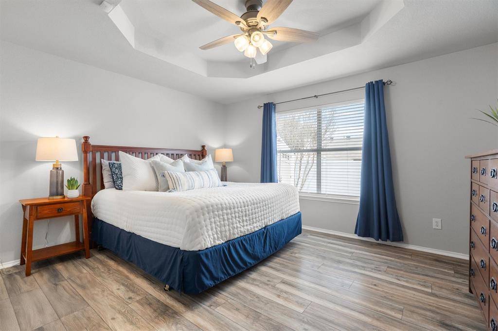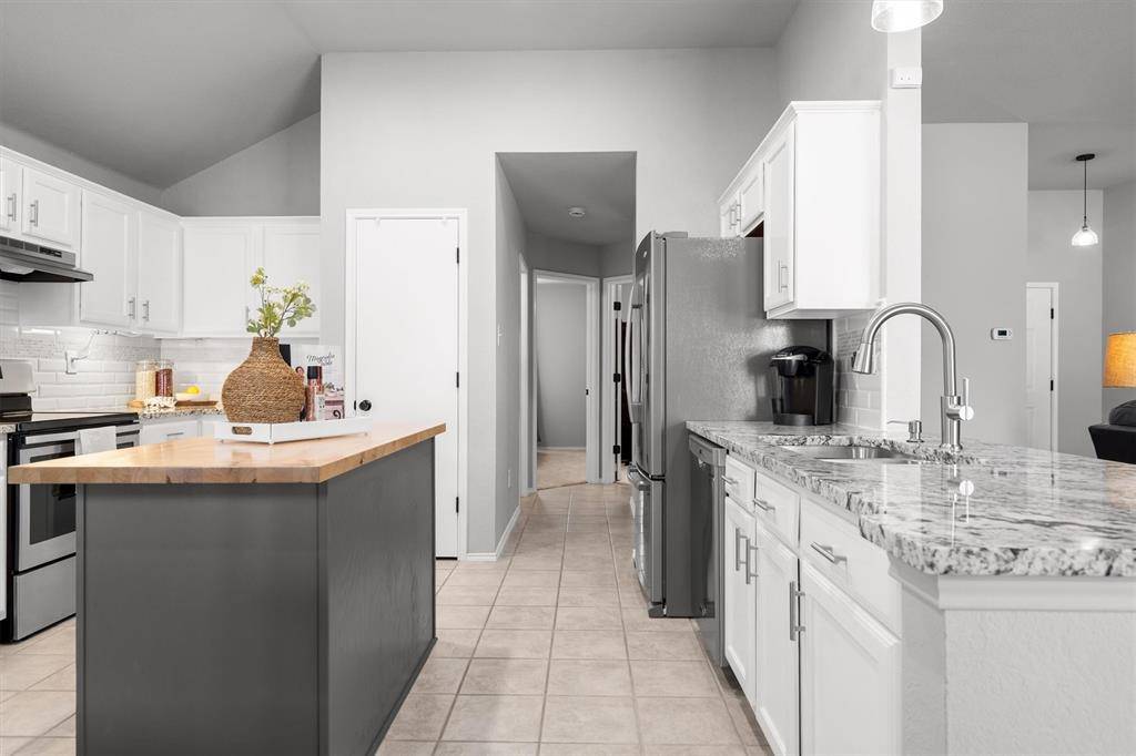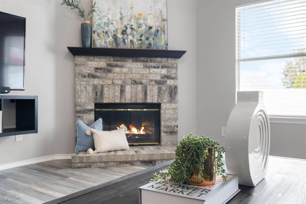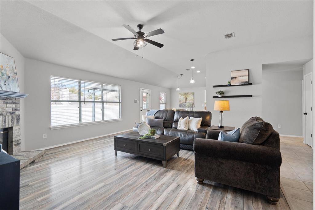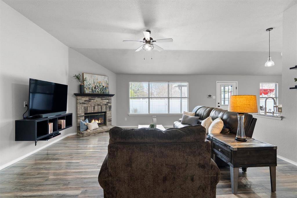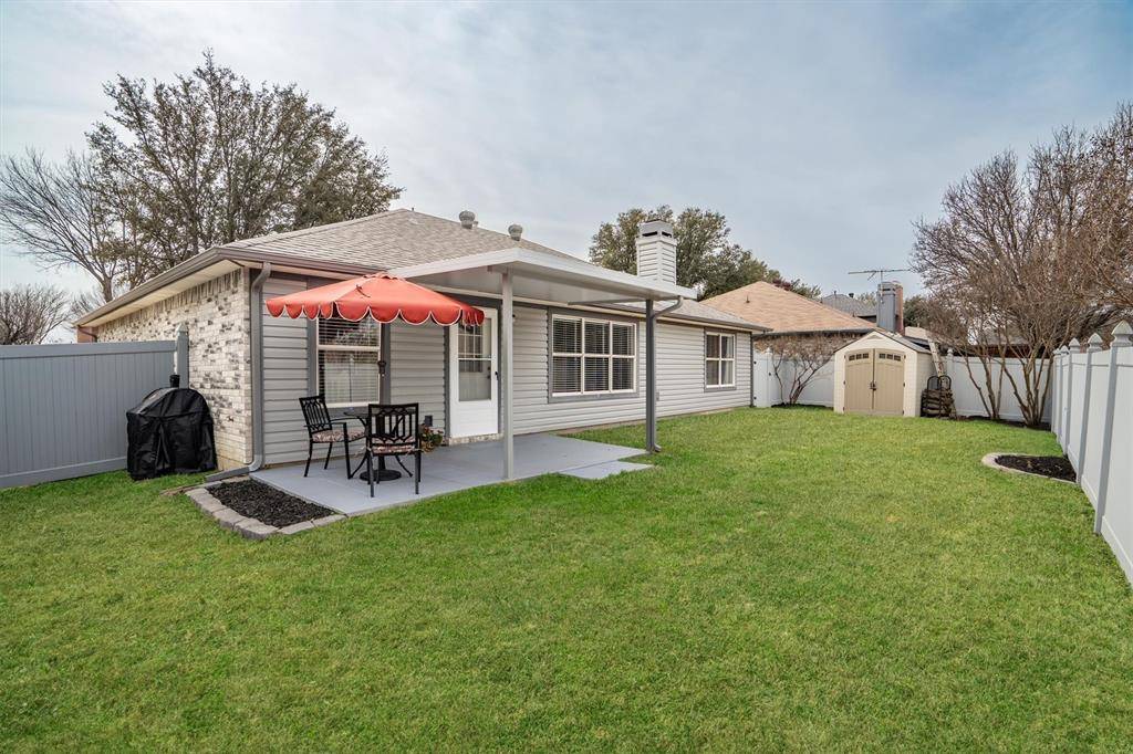 Welcome home! Nestled in the heart of Saginaw, TX, this charming one-story residence offers the perfect blend of comfort and convenience. From the moment you step inside, you're greeted by a warm and inviting living area anchored by a cozy wood-burning fireplace, ideal for relaxing evenings or gathering with loved ones and friends. Just across the living room, the beautifully updated kitchen is ready to impress. Featuring granite countertops, a stylish new backsplash, updated faucet, refreshed cabinetry, and a fresh coat of paint, this space truly feels like a chef's dream. Whether you're preparing weeknight dinners or hosting weekend get-togethers, this kitchen delivers both function and style. The primary suite provides a quiet and relaxing retreat, complete with a private ensuite bathroom showcasing gorgeous countertops, dual sinks, and a pampering garden tub designed to make every night feel like a spa night. Two additional bedrooms and a full bathroom offer flexibility for guests, loved ones, or even the perfect at-home office setup. Step outside to enjoy the beautifully maintained backyard, where a covered extended patio overlooks a peaceful outdoor space, perfect for morning coffee or evening unwinding. A convenient storage shed provides plenty of room for all your backyard essentials. This Saginaw gem is ready to welcome you home!
