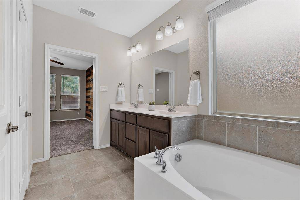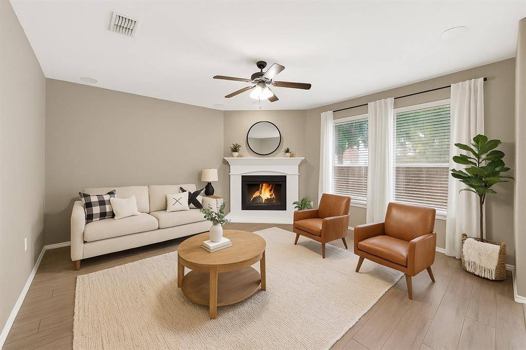 ZERO Down Conventional Loan Available – No PMI saves $100's monthly! Ask for Details. This stunning 3-bedroom home with office (optional 4th bedroom) located in the highly desirable Basswood Crossing subdivision in Saginaw, TX, zoned to top-rated Eagle Mountain–Saginaw ISD. This beautifully maintained brick home sits on a spacious lot that offers exceptional privacy- backing to a neighbor's backyard on one side and a neighbor's front yard on the other. With its corner-lot feel, added seclusion, and ample street parking, it truly feels like you only have one neighbor. Inside, you'll find high ceilings, wood-look tile flooring, and an open layout. The kitchen features a large skylight, stainless steel appliances, granite countertops, gas range, subway-tile backsplash, custom 42-inch cabinetry, generous pantry, and abundant counter space—perfect for everyday living and entertaining. The kitchen flows seamlessly into the dining and family room, highlighted by a gorgeous stone, gas-starter wood-burning fireplace, arched openings, and rounded corners that add architectural charm. A dedicated office or flex space can easily serve as a playroom, guest room, or fourth bedroom, making this home ideal for growing families or work-from-home buyers. The private primary suite is a true retreat, featuring new carpet (2025), an oversized soaking tub, dual vanities, privacy glass, and a large walk-in closet. Enjoy outdoor living on the covered patio with wired speakers, perfect for relaxing evenings or entertaining guests. Residents of Basswood Crossing enjoy resort-style amenities, including two community pools, a clubhouse, and two playgrounds. Move-in ready, priced to sell, and located in one of Saginaw's most sought-after neighborhoods. Don't miss this opportunity—ask about the ZERO down conventional loan with no PMI today!