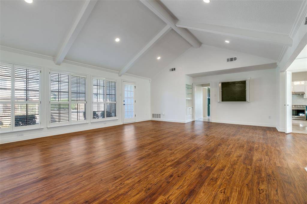 Full-scale renovation provides a modern, design-forward retreat in a beautifully established North Arlington neighborhood. Walk through the front door to be instantly greeted with drenched style & high-end features. Inside, ceilings were refinished to remove popcorn texture, followed by fresh interior paint throughout & updated hardware in matte black & champagne tones. Recessed lighting enhances the living room & expansive windows create perfect natural lighting. Hidden wet-bar with quartz countertops & custom design create a beautiful display & entertaining space. Formal dining room is bright, open & ideal for hosting.