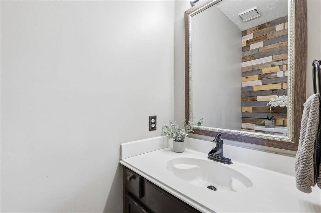Additional highlights include a conveniently located downstairs half bath for guests, a tucked-away utility room with full laundry space and cabinet storage, and luxury vinyl plank flooring throughout the main living areas and upstairs.
