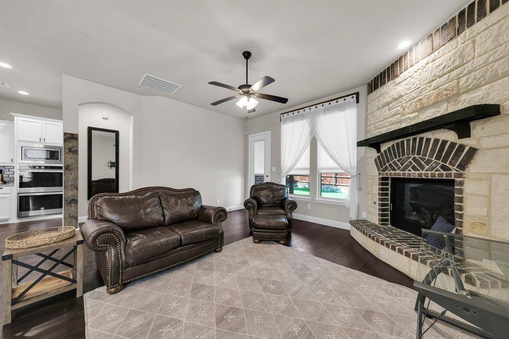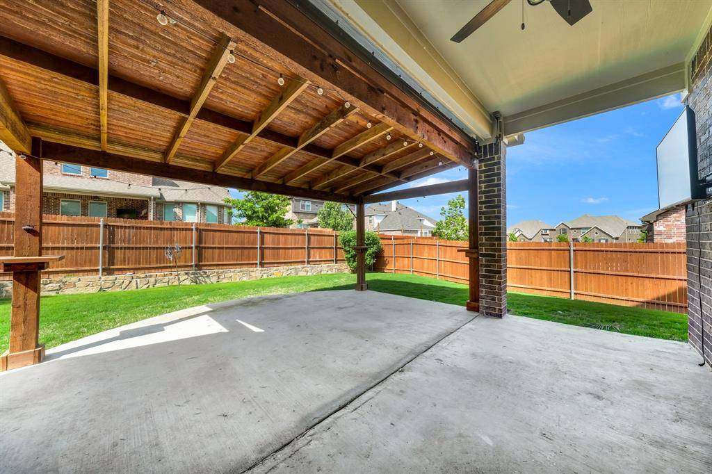 Rendition-built 4 bedroom, 3 bath home in Morningstar with hardwood floors, a floor-to-ceiling brick fireplace, and an open kitchen centered around a granite island that actually works for everyday life. The primary suite feels tucked away and includes a spa-like ensuite plus a connected office or flex space…whatever fits your setup. Out back, you've got a fenced yard with an extended patio, pergola, and a storage shed that saves you from cramming everything into the garage. Speaking of the garage, epoxy-coated floors and Jellyfish lighting on the exterior add a nice extra touch. Morningstar brings strong amenities, including the new McKinney Elementary, and the location makes it easy to settle in and stay awhile.