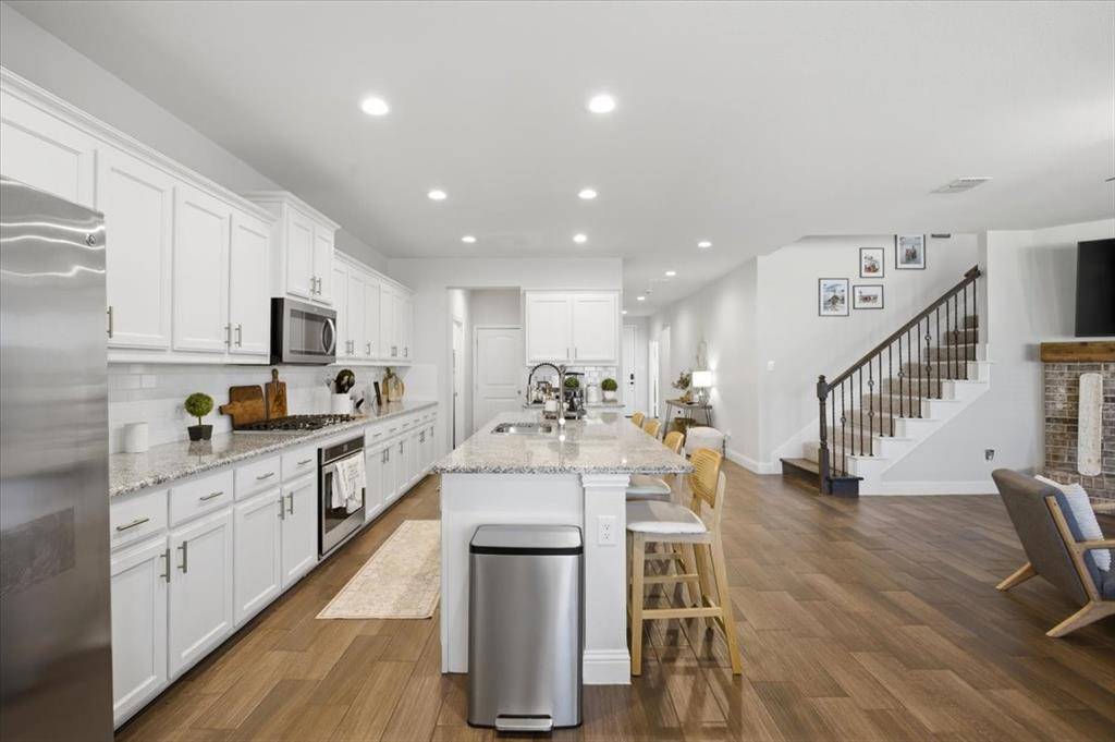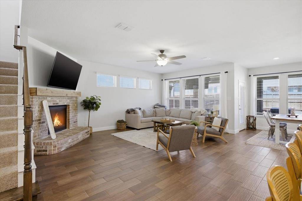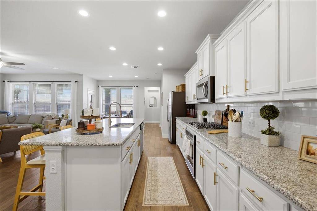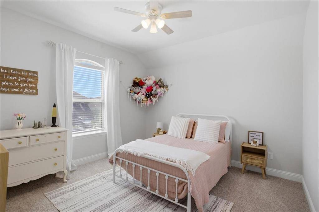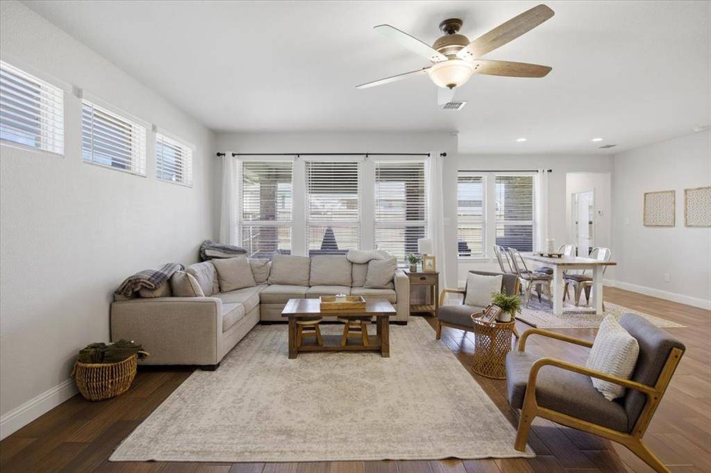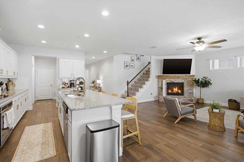 Move-in ready and thoughtfully designed, this spacious home offers a flexible layout with room to live, work, and entertain. The open-concept main living area connects seamlessly to the kitchen and dining spaces, creating an easy flow for everyday living. The private primary suite is tucked away and features a large ensuite bath with dual sinks, a soaking tub, separate shower, and a generous walk-in closet. Secondary bedrooms are well-sized, and the expansive upstairs living area provides versatile space for a media room, playroom, or game room. Step outside to a covered back patio designed for year-round enjoyment. The backyard offers beautiful grass and plenty of room to relax or entertain. Additional highlights include a dedicated office, abundant storage throughout, and a layout that adapts to a variety of lifestyles. Golf cart included with acceptable offer, adding everyday convenience and neighborhood accessibility.