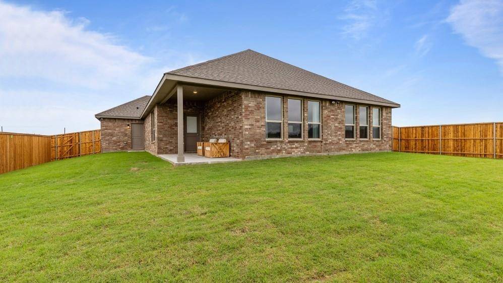Beautiful New D.R. Horton home in the Morningstar community located in highly sought-after Aledo ISD! The Crownpoint floorplan, Elevation F with an estimated summer completion, offers a well-designed single-story layout featuring 4 bedrooms, 2 bathrooms, and a 2-car garage, with flexible living spaces ideal for today's lifestyle. The open-concept design connects the spacious family room to the dining area and modern kitchen, creating an inviting space for everyday living and entertaining. The kitchen is equipped with 42” upper cabinets with crown molding, quartz countertops, a ceramic tile backsplash, stainless steel appliances, and an electric range, along with a pantry for added storage. Luxury vinyl plank flooring extends throughout the main living areas, providing both durability and style. The private primary suite includes a well-appointed en-suite bath and walk-in closet, while three secondary bedroom-one of which may be used as a study or flex space offers versatility for family, guests, or a home office. A covered patio enhances outdoor living, and thoughtful design details, modern finishes, and energy-efficient construction complete this impressive home. Morningstar residents enjoy resort-style pools, playgrounds, parks, a dog park, and scenic walking trails.