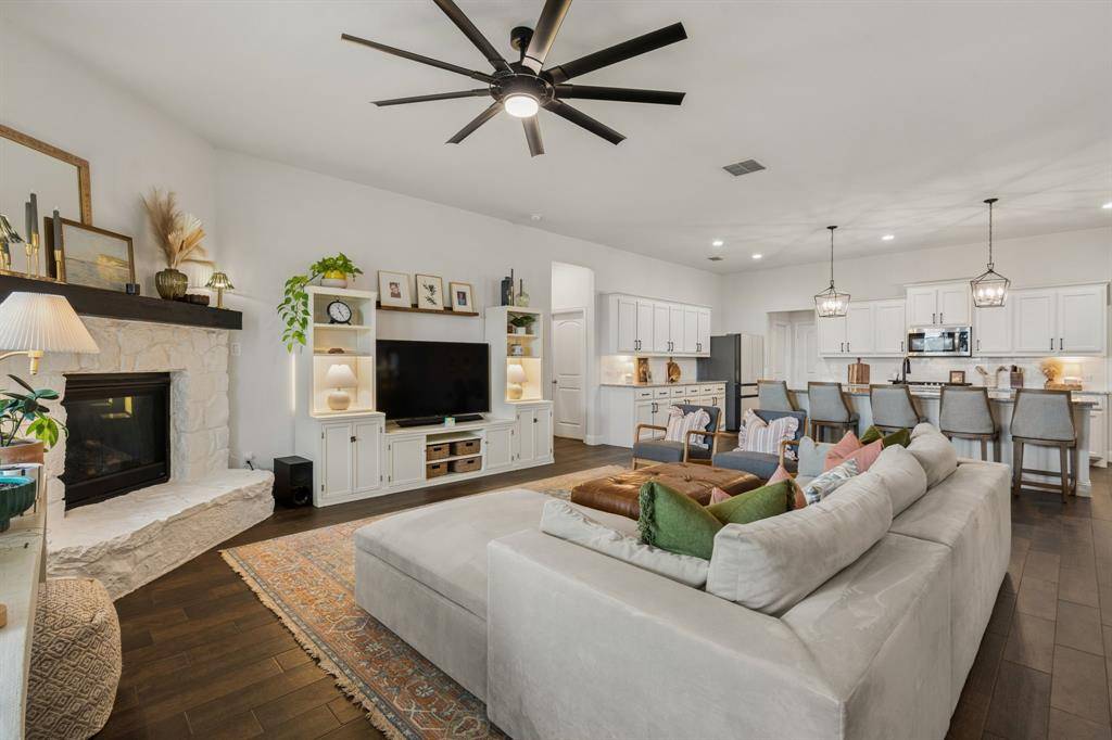 Rare single-story 5-bedroom, 3-bath home in the heart of Morningstar with a highly sought-after flexible layout and VA assumable loan at 3.875% (VA eligibility required). Located on a quiet interior loop street, this white brick and stone home offers standout curb appeal and move-in-ready comfort you won't find in nearby new construction. The thoughtfully designed floor plan includes a front flex room with French doors—perfect as a home office, playroom, or optional fifth bedroom. The open-concept kitchen, dining, and living areas create an ideal space for everyday living and entertaining, with abundant cabinet storage and generous counter space. The private primary suite is separate from secondary bedrooms, and three full bathrooms make the layout especially functional for everyone. Enjoy all that Morningstar offers, including resort-style pools, an amenity center, pickleball courts, scenic walking trails, playgrounds, and multiple ponds. Opportunities like this single-story 5-bedroom layout with an assumable low-rate VA loan are rare—schedule your showing today!