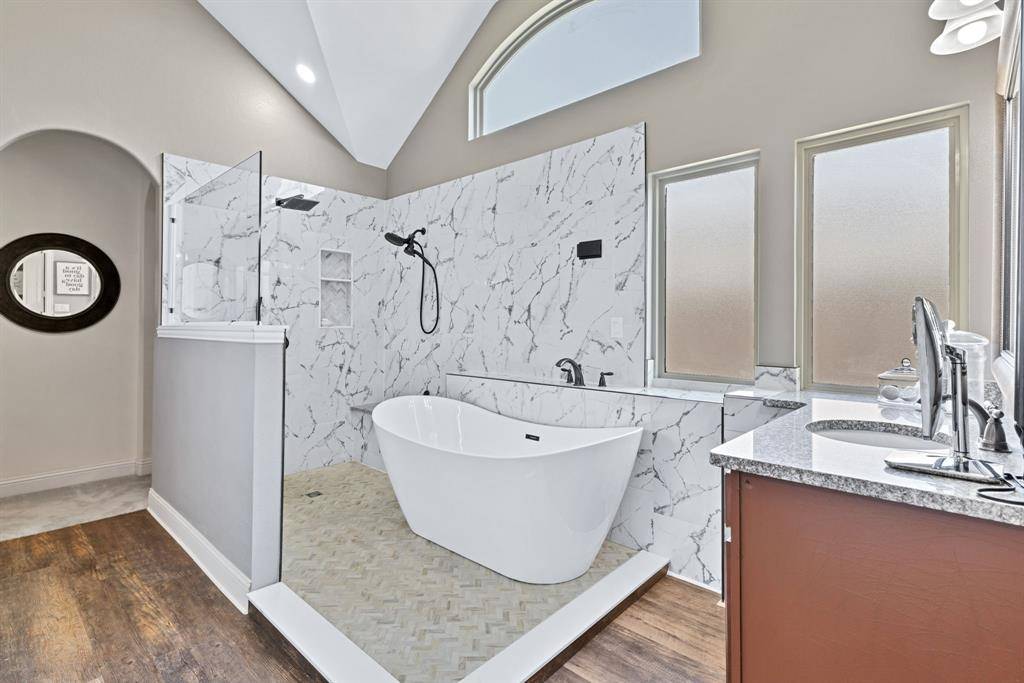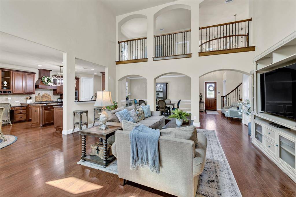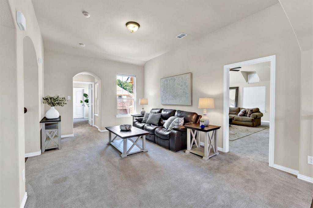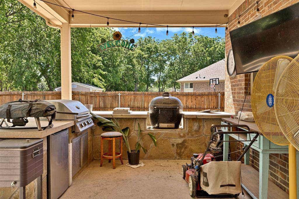 Gorgeous executive home in Marshall Ridge. Thoughtful floor plan, made for entertaining, features spacious kitchen overlooking large living area, dedicated office makes working from home a breeze and private primary suite and beautifully updated bath with separate vanities, huge shower and stand alone tub. Upstairs you'll find 3 secondary bedrooms with 2 full baths, a large loft area and separate game room.Three car garage provides plenty of space for vehicles, toys or a workshop. Gather around the gas powered, stone fire pit or under the pergol and enjoy the outdoor kitchen with built in grill and Primo XL ceramic smoker. Marshall Ridge features an amenity center, community pools, a gym, meeting room and playground. Ridgeview Elementary is in the neighborhood. Easy access to Hwy 377, I35, 170, 114 and DFW airport. Shopping and dining are close by