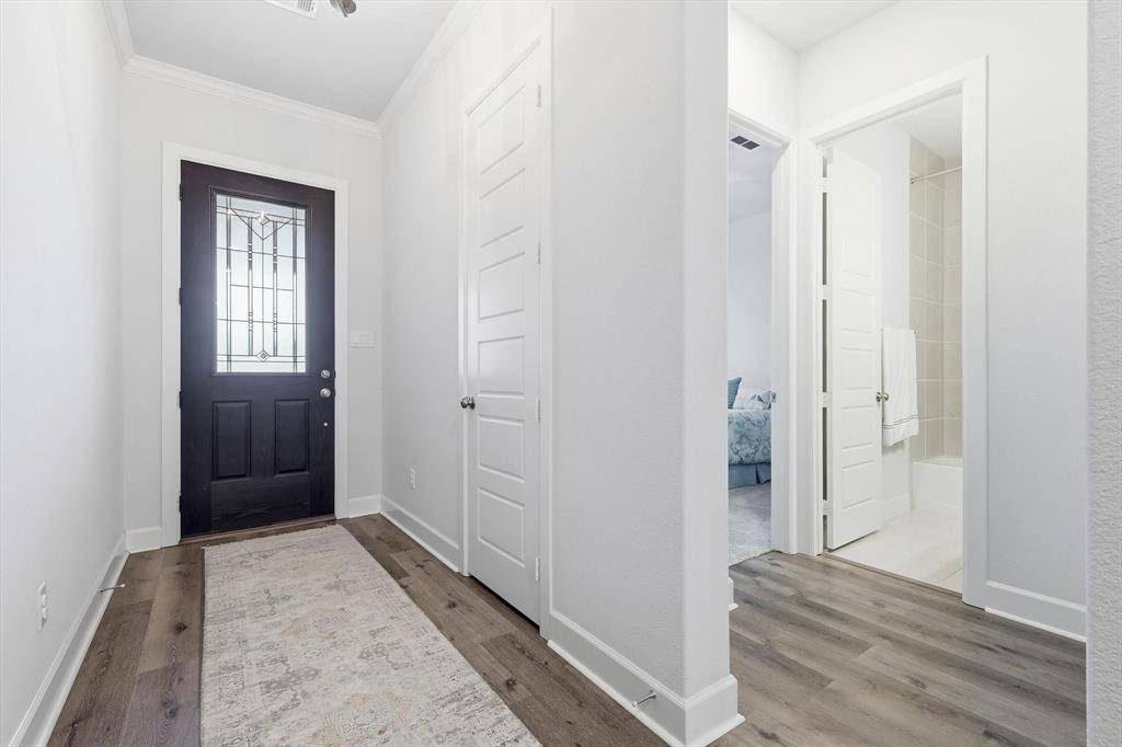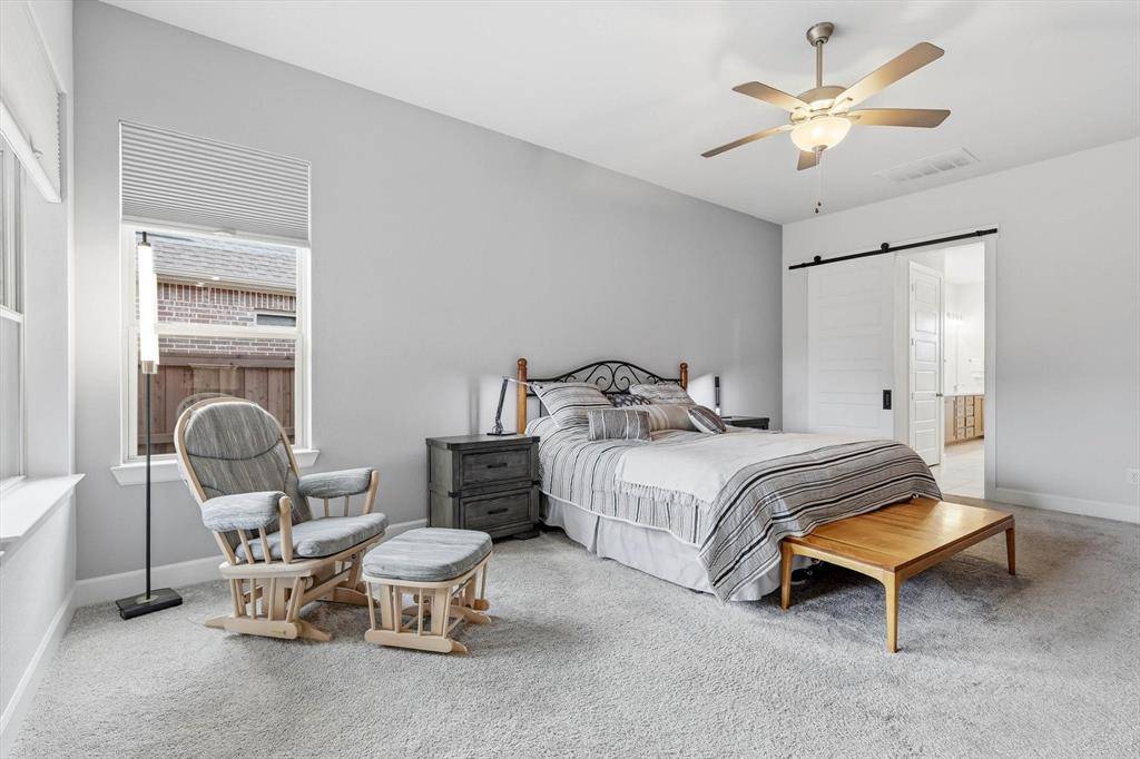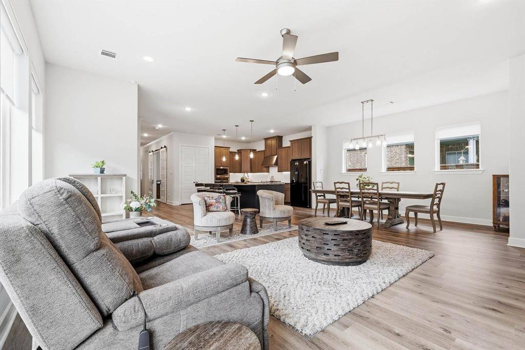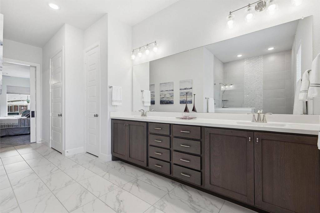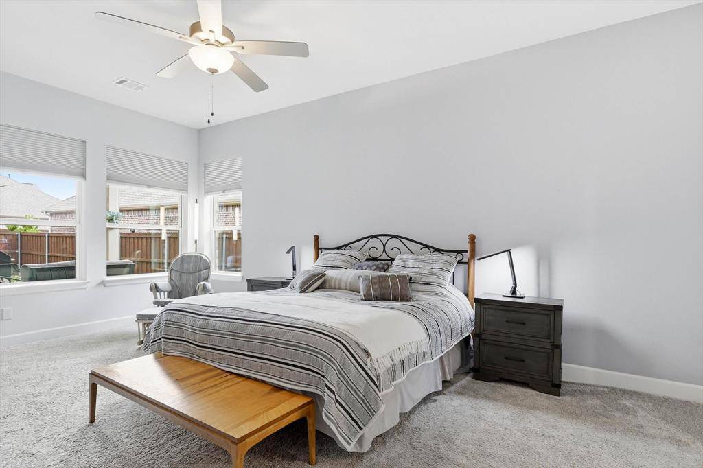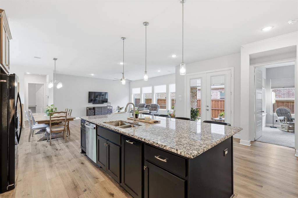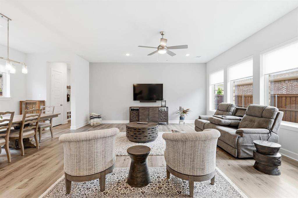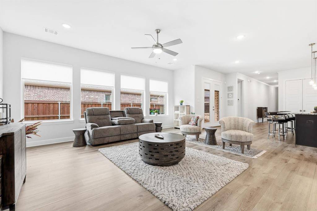 Welcome to 4817 Beaver Creek in Viridian – Elements, a premier 55+ lakeside community in Arlington—just minutes from DFW Airport and centrally located between Dallas and Fort Worth. This highly sought-after Ridgemont floor plan by David Weekley Homes—the same model as their featured model home—is known for its smart design and spacious feel, making it one of the most popular layouts in the community. Offering 2 bedrooms, 2 baths, a private office, and a rare 2.5-car garage, this home is perfect for those looking to downsize without sacrificing comfort or functionality. The open-concept living, dining, and kitchen area is generously sized, ideal for entertaining or everyday living. The kitchen features a large island, abundant storage, and plenty of workspace—truly delivering on both style and convenience. This home is also pre-owned certified, meaning it has already been inspected, all repairs have been completed, and it is completely move-in ready—a rare and valuable advantage for today's buyers. Step outside to a beautifully landscaped community garden just beyond your front door, complete with swings and seating—perfect for relaxing or connecting with neighbors. A scenic pond and the Magnolia Center are just a short walk away, giving you easy access to the community's top amenities.