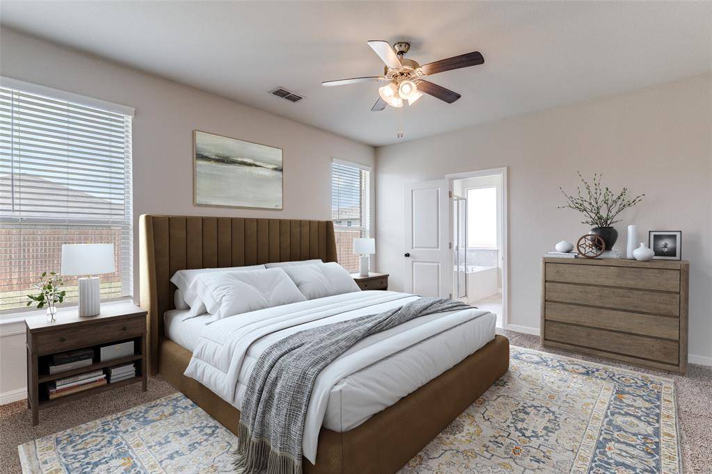 The primary suite is set up with oversized closets and a layout that gives breathing room, while the additional three bedrooms flex easily into an office, guest rooms, or dedicated workspaces. An oversized utility room adds function where it counts, and the 3-car garage gives you options for vehicles, storage, or both without compromise.