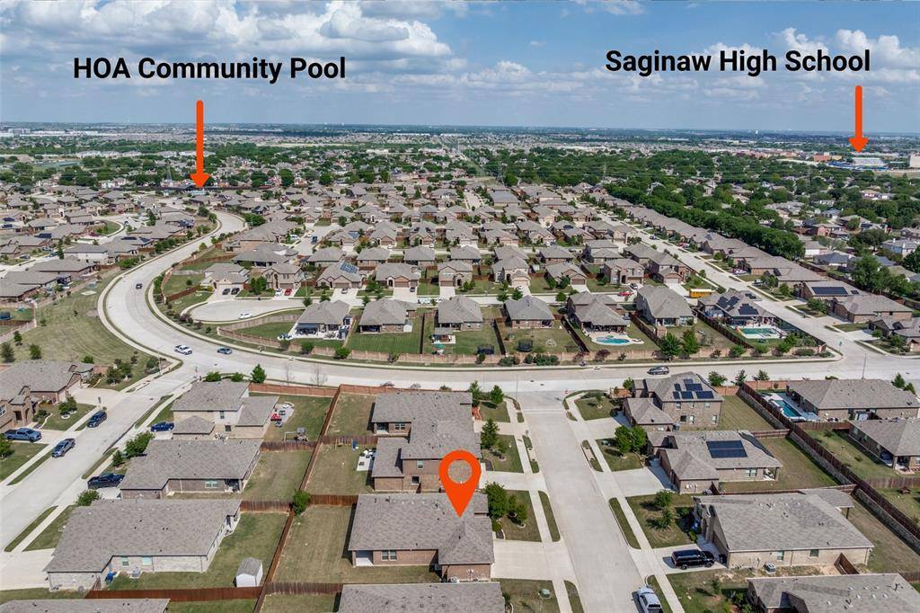 Location keeps everything within reach: 1.0 mi to Highland Middle School, 1.3 mi to Saginaw High School, 1.4 mi to Kroger and nearby dining, 2.2 mi to Northwest Community Park, and 4.7 mi to both Costco and Downtown Fort Worth. Fort Worth Meacham International Airport is 5.5 mi away, with DFW International Airport approximately 21.8 mi.