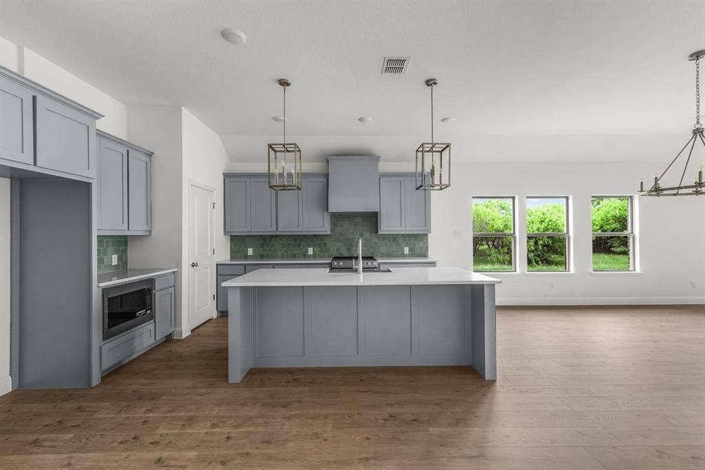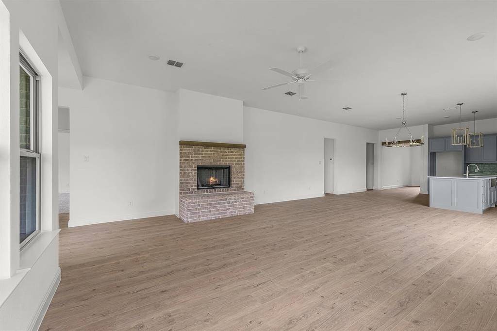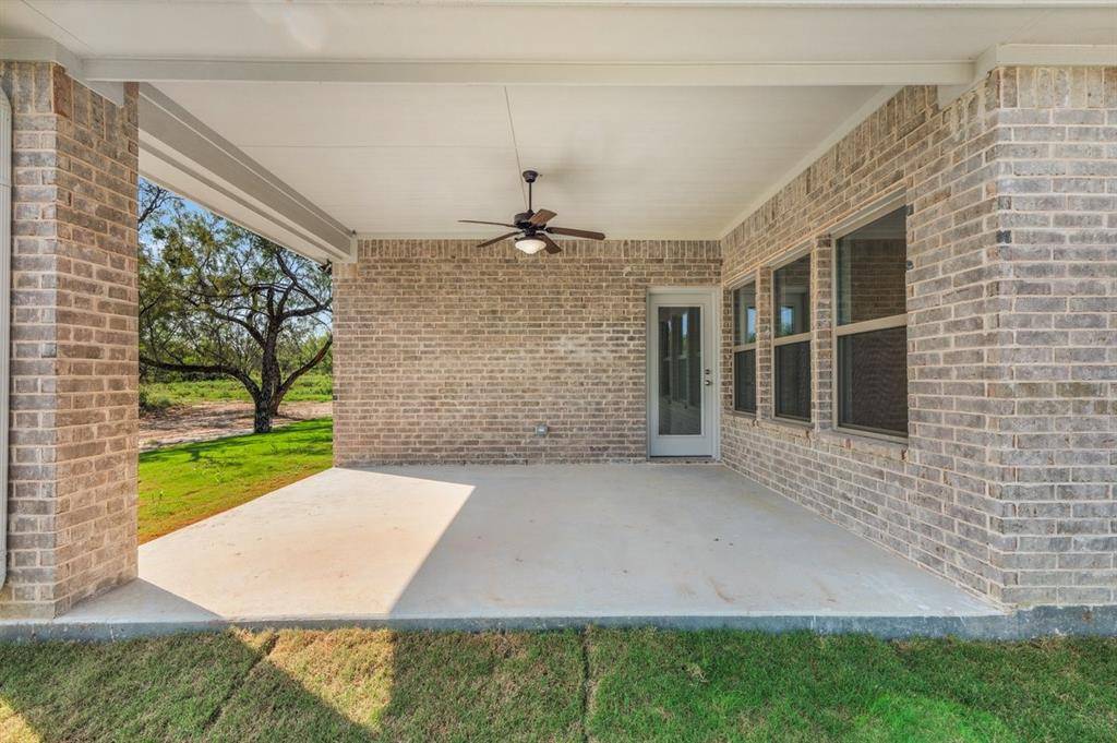 New construction by Dalton Custom Homes, this beautifully designed Monahans floor plan offers approximately 2,680 square feet of living space with 4 bedrooms, 3 full bathrooms, a versatile game room, and an oversized 3-car garage, all situated on an expansive 4.15-acre lot outside city limits with no city taxes. Surrounded by beautiful, lush mature trees, the property also features a private tank and an additional shared tank, adding to the natural character and appeal of the land while providing a rare combination of privacy, scenery, and usable acreage.The open-concept layout is ideal for both everyday living and entertaining, featuring quartz countertops, a large kitchen island with bar seating, shaker-style cabinetry, tile backsplash, an apron-front farmhouse sink, and upgraded stainless steel appliances. The spacious living area is anchored by a wood-burning brick fireplace with mantle, while additional interior highlights include vinyl plank flooring, recessed lighting, a stained wood-trimmed glass front door, and a functional mud bench. The private primary suite overlooks the scenic acreage and mature trees and includes a spa-inspired ensuite with a soaking tub, oversized tiled walk-in shower, and a generous walk-in closet. Outdoor living is just as impressive, with a covered patio designed for relaxing or entertaining while enjoying the peaceful setting. With 4.15 acres, the property provides ample space for a pool, shop, barn, RV parking, or a future guest house or in-law suite. The additional parcel also offers flexibility for a future second homesite should the new owner choose to build another residence down the road. Additional features include a private water well with no water bill, an aerobic septic system, and AT&T Fiber availability for high-speed internet. Located in Brock ISD, this property presents a rare opportunity to own new construction on acreage with mature trees, water features, modern finishes, and long-term potential.