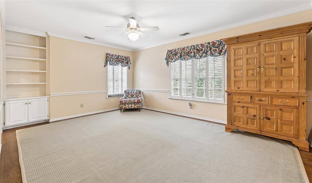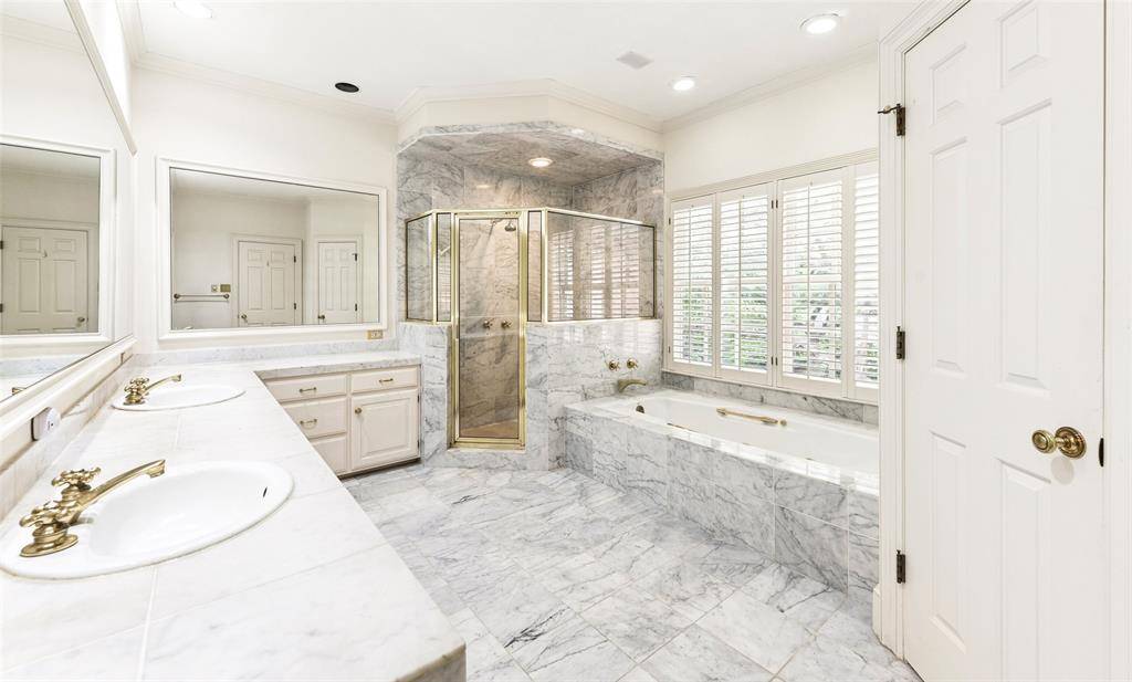 The main brick residence spans 6,037 square feet with 4 bedrooms and 5.1 baths. Inside, classic architectural elements complement tall ceilings, generous windows, and thoughtfully designed living spaces. Formal living and dining areas create an inviting atmosphere for entertaining, while the spacious family room and breakfast nook overlook the grounds and pool. The kitchen offers ample cabinetry, a walk-in pantry, and plenty of workspace for everyday use or hosting. Each bedroom includes an ensuite bath, and a third-floor bonus room provides flexible space for media, play, work, or hobbies.