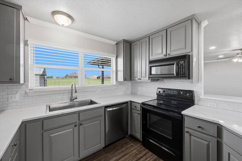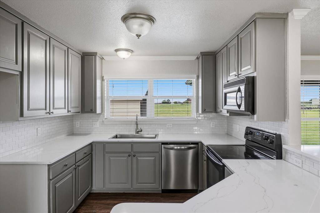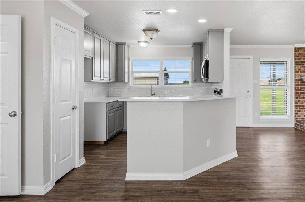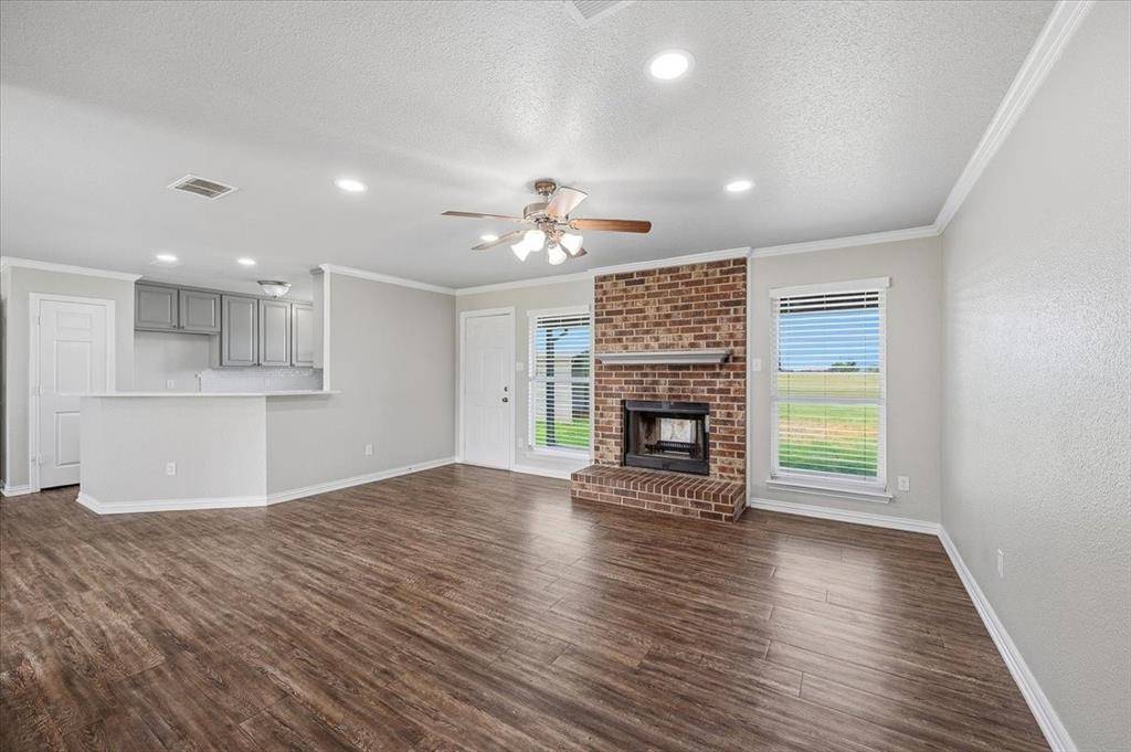 Exquisitely remodeled 3-bedroom, 2-bath traditional home on 1.36 acres in BROCK ISD. This 1,966 sq ft residence boasts a brand-new roof and gutters, stunning quartz countertops in the kitchen and bathrooms, custom blinds throughout, and a cozy fireplace perfect for gatherings. The spacious primary bedroom includes a beautifully functional bathroom with a separate tub and shower and two walk in closets. The converted garage provides a second living area, a home office, or a playroom for the kids. Enjoy a fully landscaped yard with river rock, a sprinkler system, a private water well, and a fully fenced backyard—ideal for pets and outdoor entertaining. Modern updates meet timeless charm in this beautifully maintained home, offering comfort, style, and functional living spaces. Don't miss this move-in-ready gem!