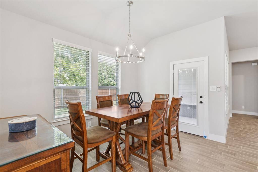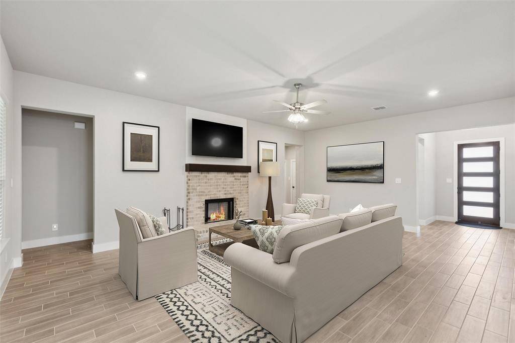 Move-in ready 4-bed, 2.5-bath home located in Willow Vista Estates in Saginaw, Texas, offering functional living space, modern finishes, & convenient access to shopping, dining, & entertainment. This well-maintained home is designed for both everyday living & entertaining with an open-concept layout, spacious rooms, & neighborhood amenities nearby. Step inside to a bright living room with a fireplace that opens seamlessly to the kitchen & dining area. The kitchen features granite countertops, a large center island, decorative lighting, stainless steel appliances, & ample cabinet storage, creating a practical & inviting gathering space. The primary suite is privately positioned & includes a walk-in closet, dual sinks, linen storage, separate shower, & soaking tub. Three secondary bedrooms are located separately from the primary suite, providing flexibility for guests, office space, or additional living needs. Additional interior features include a dedicated dining area, utility room with storage, an oversized 2-car garage with epoxy flooring, 9-foot ceilings, an 8-foot garage door, & a tankless gas water heater for added efficiency & convenience. Outdoor features include a covered patio with epoxy-coated flooring, privacy-fenced backyard, & exterior power access in the eaves for seasonal lighting or décor. Located near community amenities including walking trails, tennis courts, basketball courts, volleyball courts, playgrounds, & two dog parks. Convenient access to nearby shopping, dining, & entertainment in Alliance Town Center, Presidio Towne Crossing, & downtown Fort Worth. Enjoy nearby outdoor recreation at Eagle Mountain Lake, Marine Creek Lake, & local parks, along with easy access to restaurants, retail, & major commuter routes. This home offers updated features, functional space, & a convenient North Fort Worth location close to everyday amenities & weekend entertainment. Schedule your home tour today & make 632 Mooney Drive your new address.