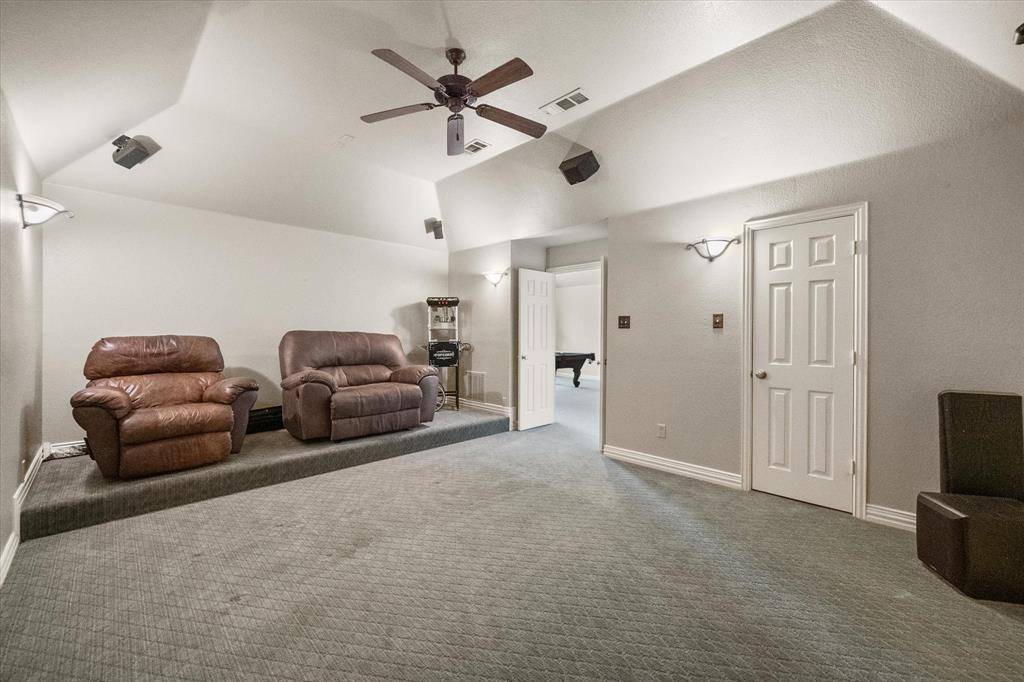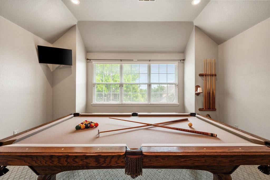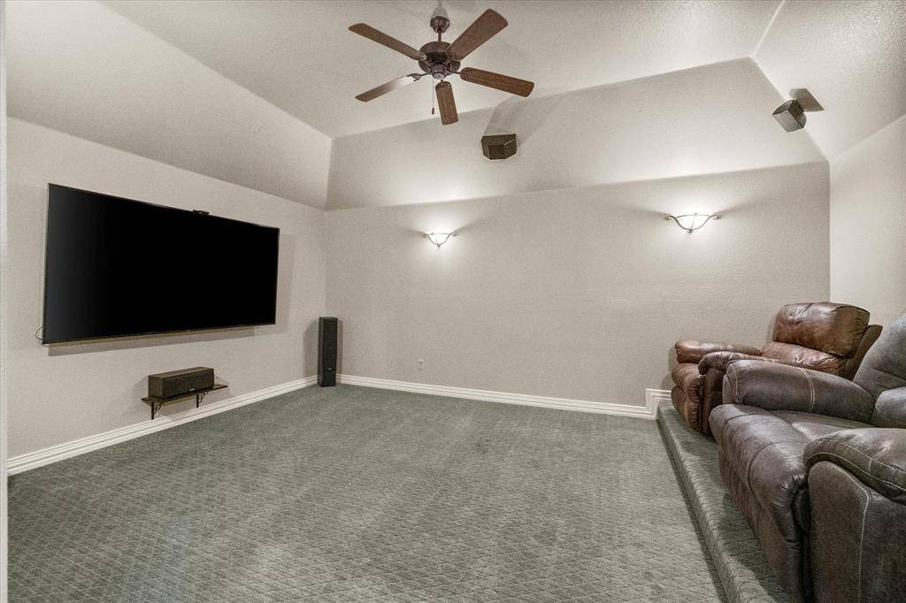 Upstairs resides a spacious game room, media room, and full bath create the ideal setup for entertaining, movie nights, or flexible living. The media room is fully equipped with premium components and ready for immediate use. Outside, the beautifully landscaped backyard provides a private setting with space to relax, entertain, or accommodate pets.
