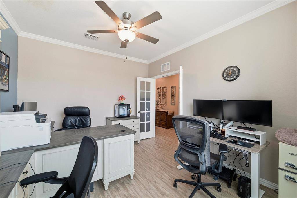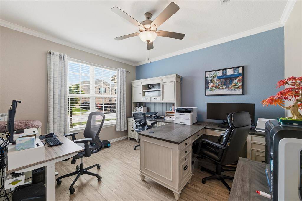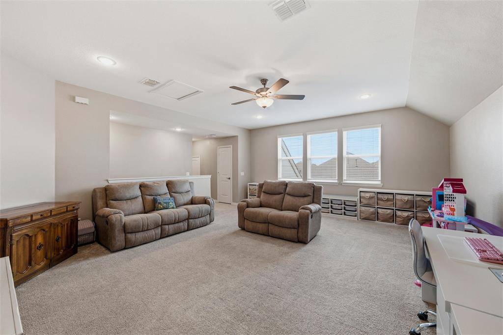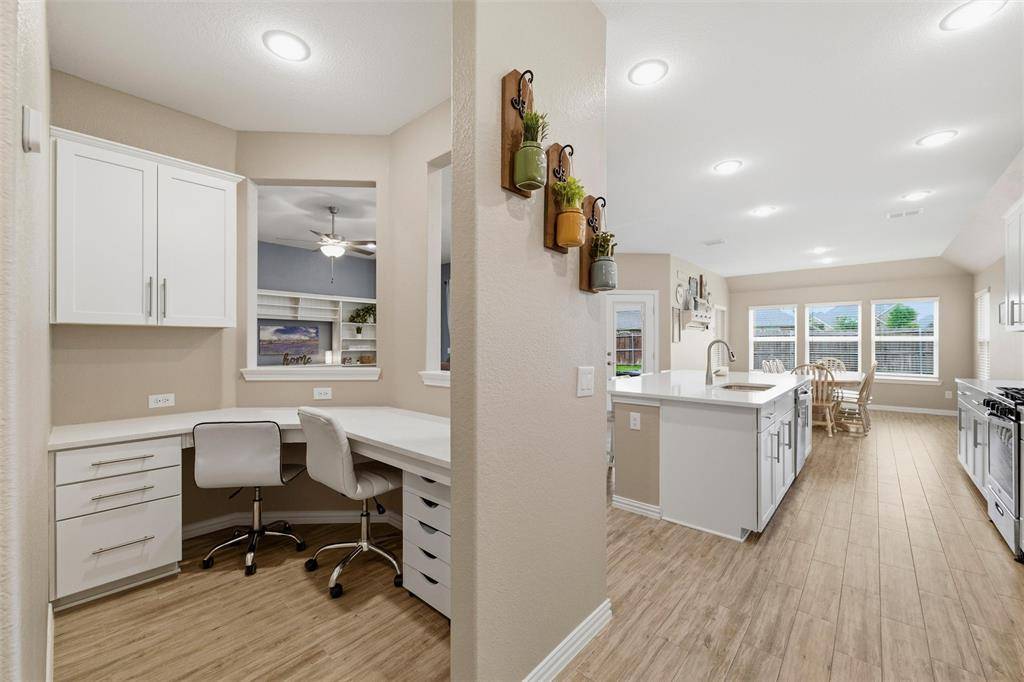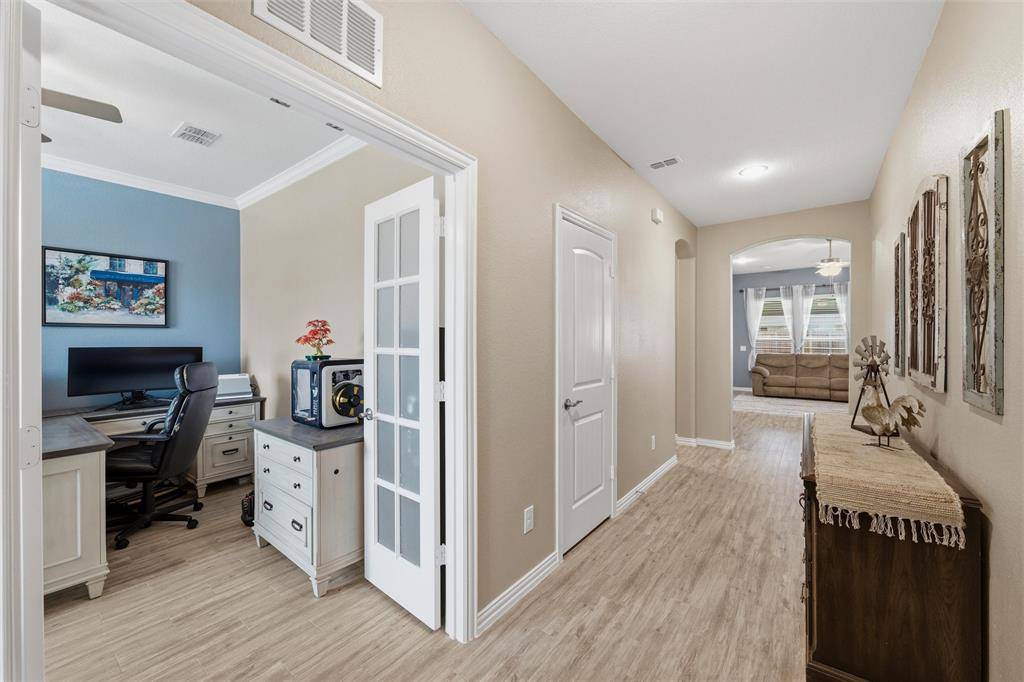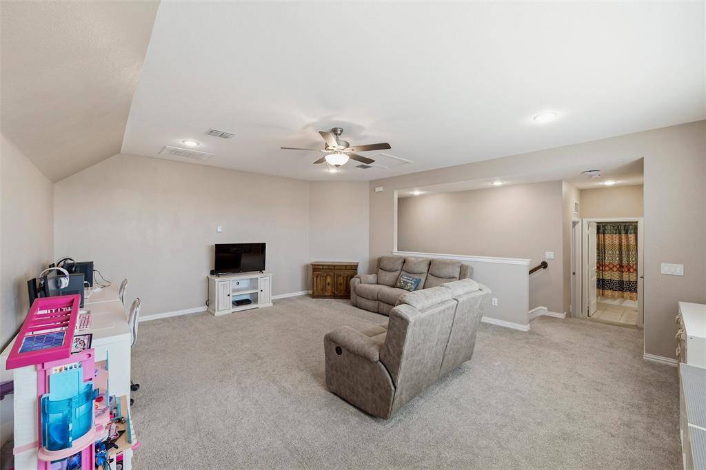 Welcome to this beautifully maintained Pulte-built home in Haslet! Offering 4 spacious bedrooms and 3 full bathrooms, this thoughtfully designed home provides a flexible layout perfect for both everyday living and entertaining. As you enter, you're greeted by a private office at the front of the home—ideal for working from home or a quiet study space. The heart of the home features an open-concept layout with an additional work or study nook just off the kitchen, perfect for homework stations, meal planning, or staying organized. The primary suite and two secondary bedrooms are conveniently located downstairs, creating a functional split layout. Upstairs, you'll find a versatile second living area or game room, along with a private bedroom and full bathroom—perfect for guests, a teenager's retreat, or multi-generational living. The 2.5-car garage offers extra space for storage, a workshop, or recreational gear—adding even more functionality to this already impressive home. Freshly painted and move-in ready, this home offers a clean, updated feel and is ready for its new owners to make it their own. Don't miss the opportunity to enjoy space, flexibility, and comfort in this exceptional home!